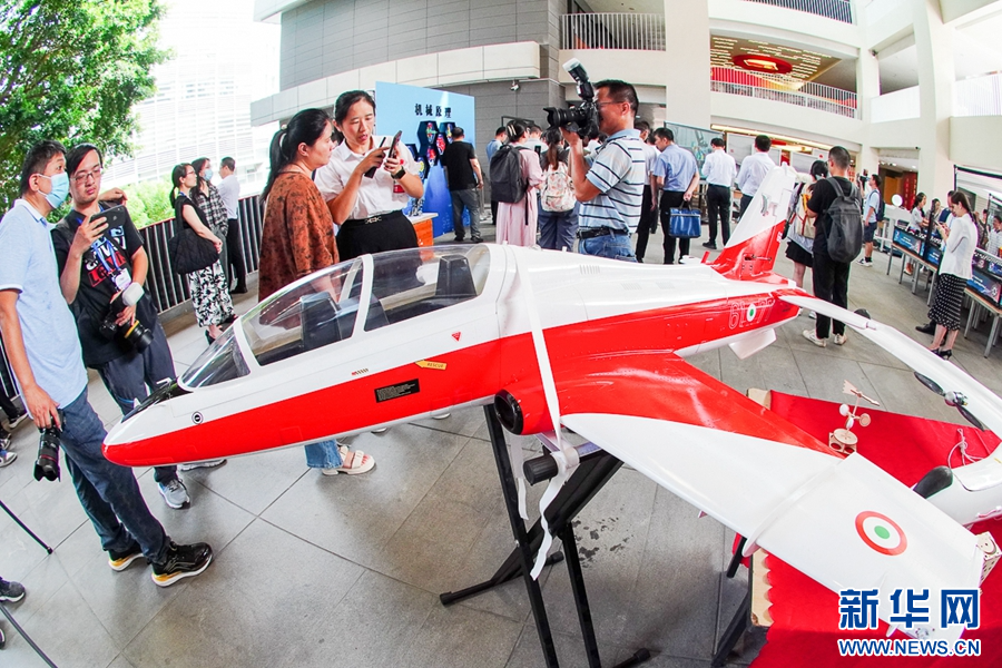 9月12日,在福州第三中學(xué)展出的師生參與設(shè)計(jì)的無(wú)人機(jī)。新華網(wǎng) 肖和勇 攝