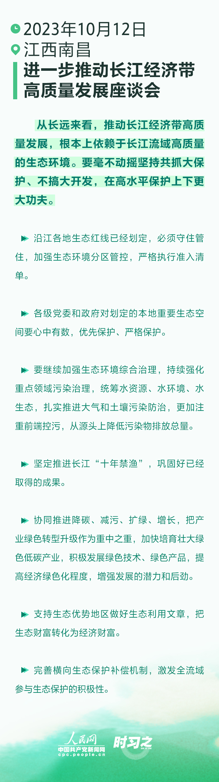 10月12日下午,習(xí)近平總書記在江西省南昌市主持召開進(jìn)一步推動長江經(jīng)濟(jì)帶高質(zhì)量發(fā)展座談會并發(fā)表重要講話。座談會上,總書記指出,從長遠(yuǎn)來看,推動長江經(jīng)濟(jì)帶高質(zhì)量發(fā)展,根本上依賴于長江流域高質(zhì)量的生態(tài)環(huán)境。