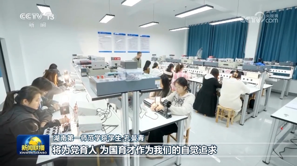 國家要強大,必須辦好教育。湖南第一師范學院每年為教學一線培養(yǎng)近2500名畢業(yè)生,其中超九成扎根在農(nóng)村學!,F(xiàn)場聆聽總書記的講話后,師生們表示,要在實踐中傳承紅色基因,擔負起培養(yǎng)時代新人的重要使命。