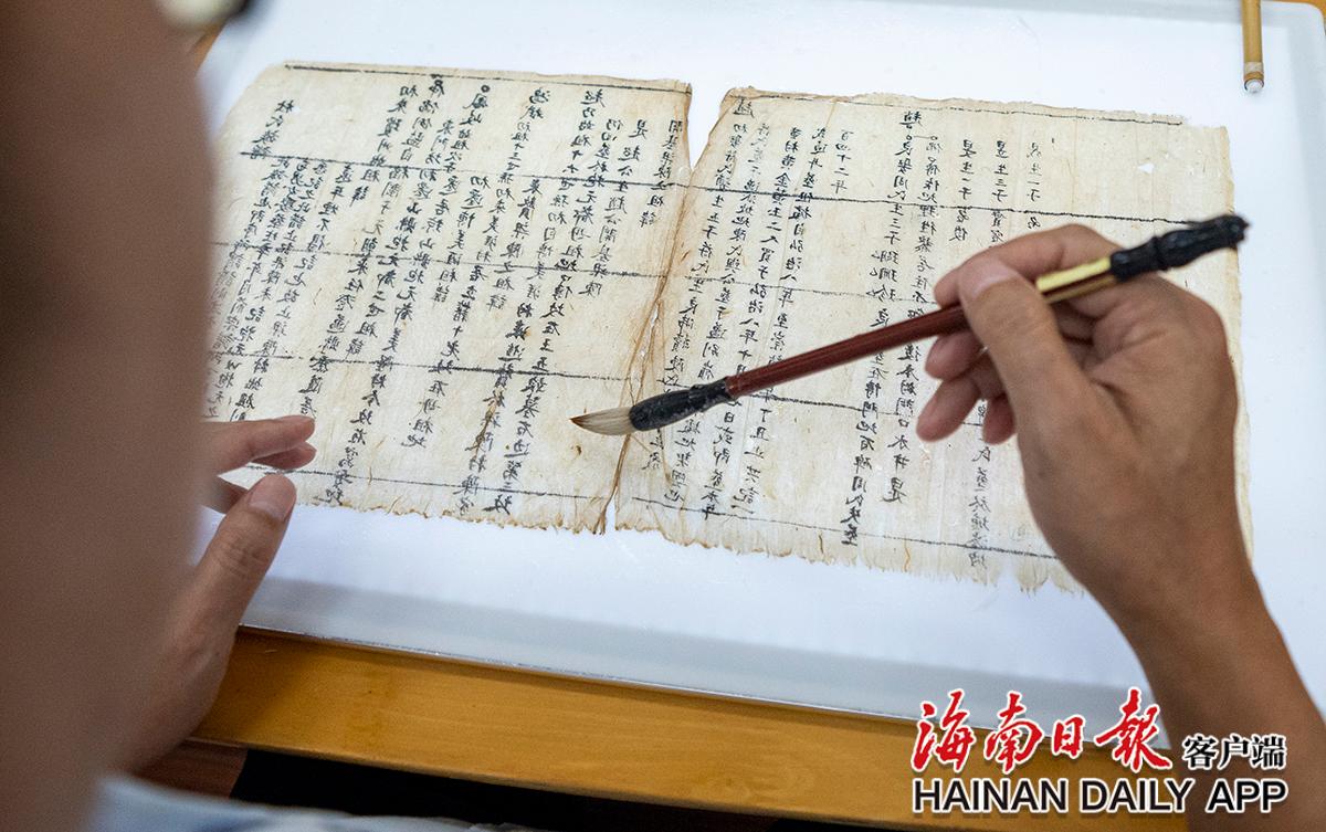 “2008年的時候,國家圖書館古籍保護中心有一項為期3個月的古籍修復培訓計劃,當時海南只有我一人報名參加。”黃文鋒答道,“在北京,我?guī)煆奈覈偶迯蛯<叶艂ド到y(tǒng)地了解和學習了所有的工序和技術(shù)。”