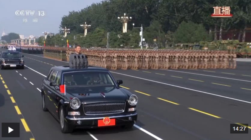 在雄壯的軍樂聲中,習(xí)近平乘車沿著寬闊的長安街,依次檢閱徒步方隊(duì)和裝備方隊(duì)。