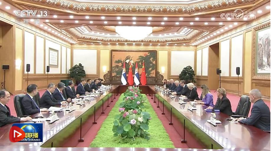 9月4日下午,國家主席習(xí)近平在北京人民大會(huì)堂會(huì)見來華出席紀(jì)念中國人民抗日戰(zhàn)爭(zhēng)暨世界反法西斯戰(zhàn)爭(zhēng)勝利80周年活動(dòng)的塞爾維亞總統(tǒng)武契奇。