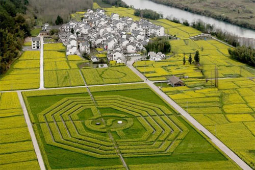 3月24日,安徽齊云山油菜花盛開(kāi)金黃與一個(gè)“太極八卦圖”相映成趣。近日,在安徽黃山市休寧縣齊云山腳下南坑村360多畝盛開(kāi)金黃的油菜花叢中,一個(gè)巨型的“太……
