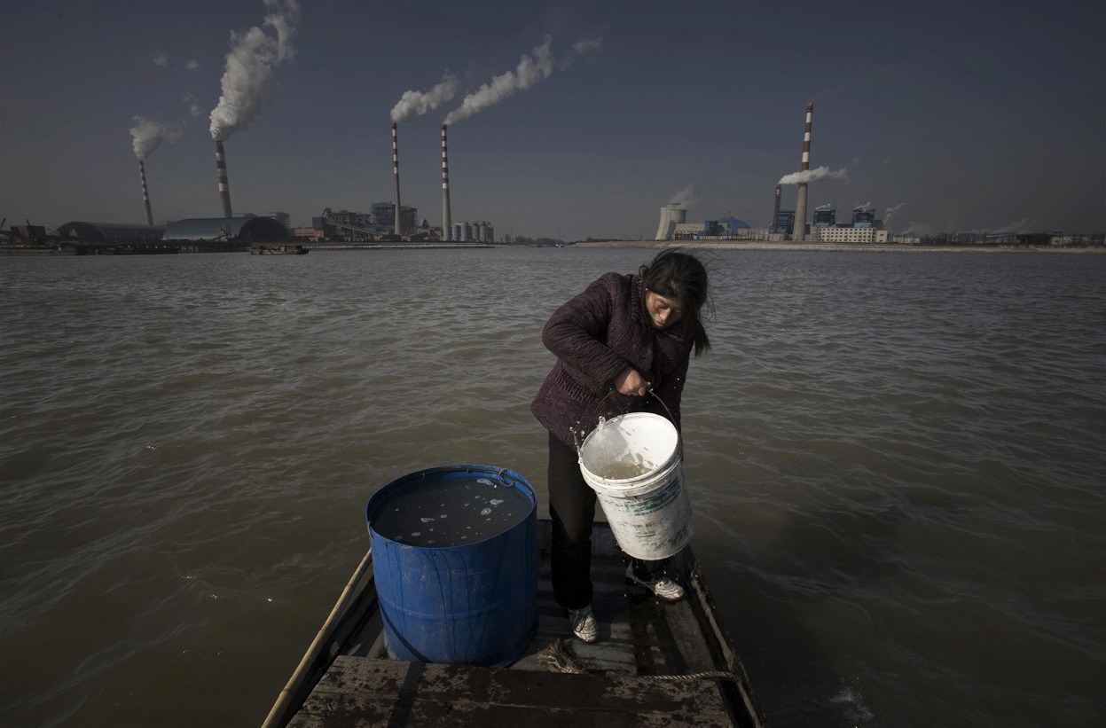 楊林港的一名婦女正從長江里打水。楊林港共有50多戶漁民,幾十年來一直以捕魚為生,喝的都是長江水。過去幾年,長江的污染越發(fā)嚴(yán)重,散發(fā)出一股奇怪的味道。2003……
