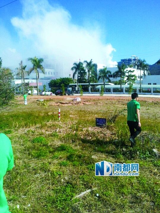 廠房冒出濃煙,工人四散。受訪者供圖南都訊 1日下午3點多,從珠海市高欄港區(qū)曉星氨綸廣東有限公司涌出約兩百名員工,每個人臉上都寫滿了驚慌,廠區(qū)內(nèi)一處管道正向……