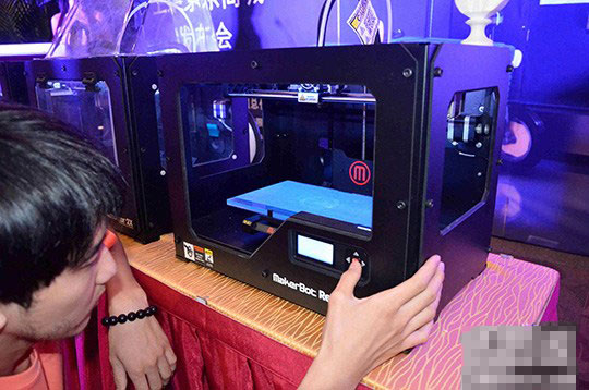 圖為一名觀(guān)眾在仔細(xì)觀(guān)看3D打印機(jī)。中新社發(fā) 潘旭臨 攝 8月19日,北京威控睿博科技有限公司在北京宣布,由該公司總代理的MakerBot3D打印機(jī)首次登陸國(guó)內(nèi)知名電商--……