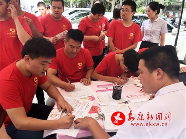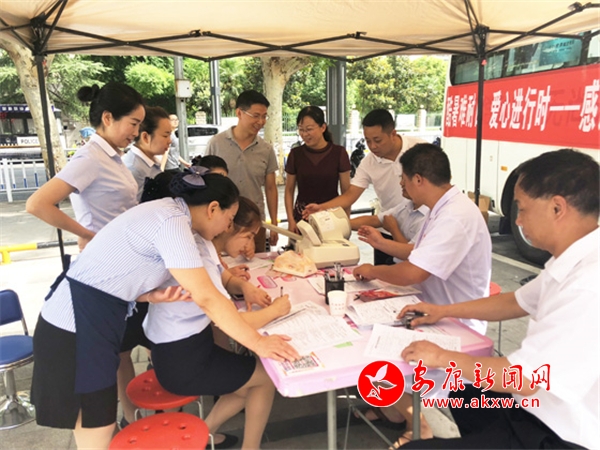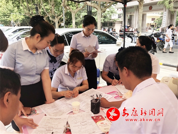 早晨的空氣格外清新,前夜的大雨帶走了不少暑氣,給了悶熱的夏日送來(lái)一絲難得的清涼。8點(diǎn)不到,安康市中心血站的獻(xiàn)血車已?吭谒募静惋嫲部蒂e館門(mén)前,等待著獻(xiàn)血者的到來(lái)。上午九點(diǎn)半,結(jié)束了例會(huì)的員工們陸續(xù)來(lái)到車前,大家圍坐在一起體檢、填表,市中心血站副站長(zhǎng)詹勝萍,獻(xiàn)血服務(wù)科科長(zhǎng)潘登也來(lái)到活動(dòng)現(xiàn)場(chǎng),與工作人員一同做起動(dòng)員工作,詹副站長(zhǎng)親切耐心地為獻(xiàn)血者講解血液常識(shí),發(fā)放宣傳彩頁(yè),叮囑獻(xiàn)血注意事項(xiàng),活動(dòng)現(xiàn)場(chǎng)的氣氛十分活躍。