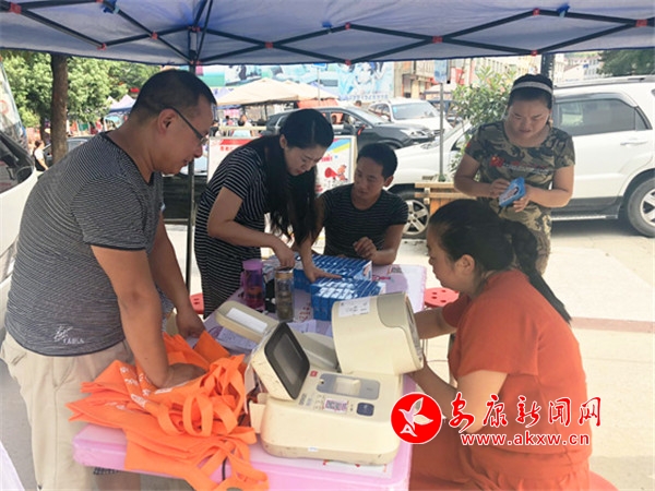 安康新聞網(wǎng)訊(通訊員 屈閔)8月6日,安康市中心血站獻血車來到了漢陰縣蒲溪鎮(zhèn)政府大街前開展夏季獻血活動。雖是早上,但天氣已十分炎熱,讓人只想找個陰涼處躲起來,可沒過多久,獻血車旁的體檢桌邊就坐滿了前來獻血的群眾,大家你一言我一語的詢問著獻血知識,血站工作人員認(rèn)真地為大家解答,耐心地指導(dǎo)獻血者填好體檢表里的每一項內(nèi)容。