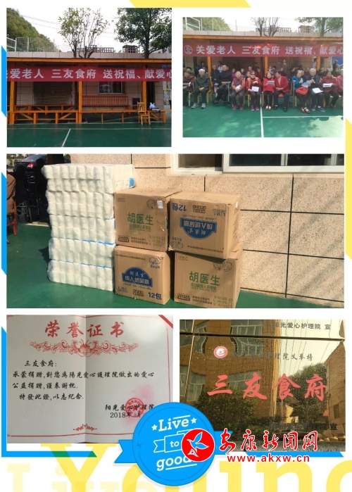 安康新聞網(wǎng)訊(記者 周。 愛不是靠說,而是靠做。說得再多不如踏實(shí)去做,愛老關(guān)鍵靠行動(dòng)。昨天是農(nóng)歷9月9日重陽節(jié),為關(guān)愛老人,三友食業(yè)免費(fèi)為護(hù)理院老人送溫暖,送早餐、紙巾,尿不濕等老人用品。并在這段時(shí)間里為70歲以上老人提供免費(fèi)早餐。hWA安康新聞網(wǎng)
