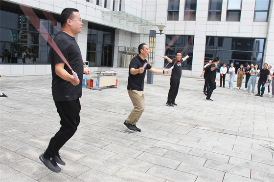 當(dāng)然比賽中還有許多“小插曲”,有的選手鞋帶松了,有的選手繩子扭了,有的選手眼鏡掉了,有的選手被大繩打到疼得哇哇叫,但正是因?yàn)橛辛诉@些小插曲,才讓參與者的笑聲更響,讓這場(chǎng)比賽變得更生動(dòng)有趣,也讓“快樂(lè)工作、幸福生活”這句話有了最真實(shí)的體現(xiàn)。