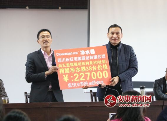 安康新聞網(wǎng)訊(通訊員 熊鋒)12月5日下午,長(zhǎng)虹日電科技公司安康銷(xiāo)售公司代表向漢濱區(qū)五里鎮(zhèn)敬老院及村(社區(qū))捐贈(zèng)38臺(tái)凈水機(jī),價(jià)值22萬(wàn)余元。據(jù)悉,此次捐贈(zèng)是……