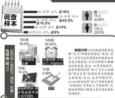 與此同時,在明確表示不參與“雙11”搶購的人群中,33.33%的人擔心商品質(zhì)量,22.22%的人表示“不想湊熱鬧。”