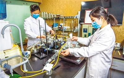 實(shí)驗(yàn)開(kāi)始30分鐘后,記者看到,燒瓶中的石油醚由原本的無(wú)色透明變?yōu)榱说狞S色,這說(shuō)明湯圓中的油脂已被提取出來(lái)。這時(shí)燒瓶中的液體其實(shí)已不僅僅是石油醚,而是石油醚和油脂的混合物。此時(shí),實(shí)驗(yàn)的第一個(gè)大步驟——油脂提取已經(jīng)完成。