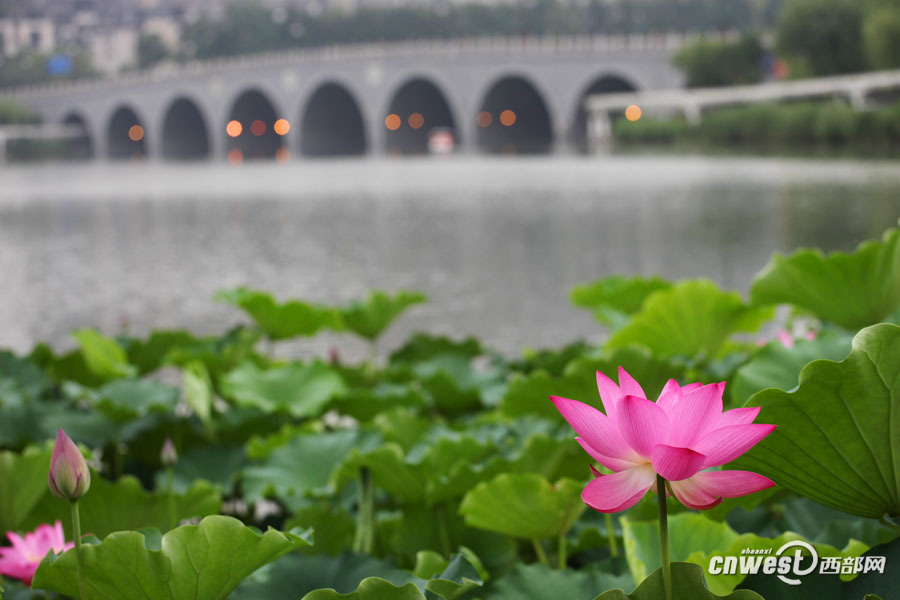 曲江池荷花爭相開放 端莊美麗引游人