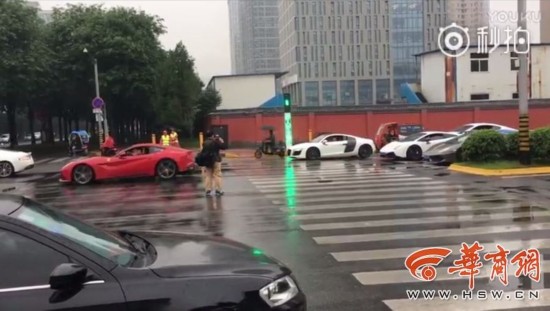 為保證婚禮車隊(duì)順利通過,開道的3輛豪車先后堵在三個(gè)十字路口中間“封閉管制”。昨日,“封閉管制”的一豪車駕駛員被交警處罰,并被移交公安部門。