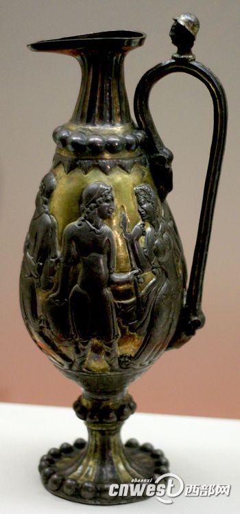 10月11日,據(jù)陜西歷史博物院官方透露,這件中國(guó)人收藏的雕刻有希臘神話故事的波斯鎏金銀瓶已經(jīng)來(lái)到西安,將和其它140件來(lái)自西北五。▍^(qū))的絲綢之路主題文物一道,亮相10月17日開(kāi)展的《長(zhǎng)安絲路東西風(fēng)》展上。