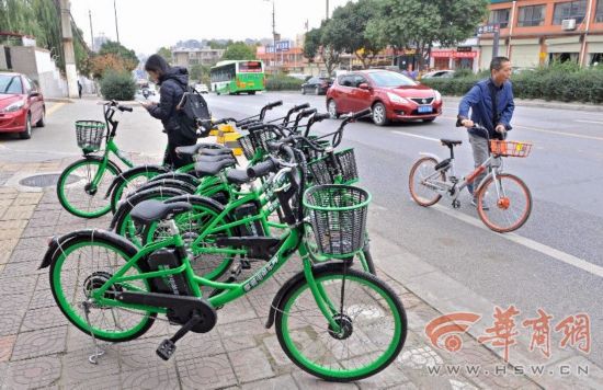 自10月26日指導意見發(fā)布后,華商報記者注意到,最近幾天西安共享電動車仍能正常使用。10月29日,華商報記者在會展中心、西影路多處看到有用戶正常使用綠色的享騎電單車。華商報記者下載并注冊了享騎電單車,繳納了299元押金就可以用車了。在西安理工大曲江校區(qū)門口,記者用軟件二維碼掃描一輛電單車,會顯示車子的電量信息,提示顯示電量不足建議使用另一輛車。又換了一輛車騎行,只需擰右邊把手不用蹬腳蹬,非常省力。在附近還車的市民張先生表示,在雁翔路爬坡時,更喜歡騎這種共享電動車,要省力很多。