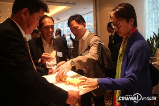“獼猴桃營(yíng)養(yǎng)價(jià)值高,在香港很受歡迎。目前香港的獼猴桃大部分都是從新西蘭、加拿大進(jìn)口的,看了陜西的獼猴桃,我覺(jué)得我們應(yīng)該有合作的機(jī)會(huì)!毕愀酃P架山獅子會(huì)基金籌備事務(wù)主席陳笑玲在與眉縣秦旺果友獼猴桃專(zhuān)業(yè)合作社的銷(xiāo)售部經(jīng)理武繼宏交流后,陳笑玲當(dāng)場(chǎng)留下電話,希望在會(huì)后有進(jìn)一步的交流。