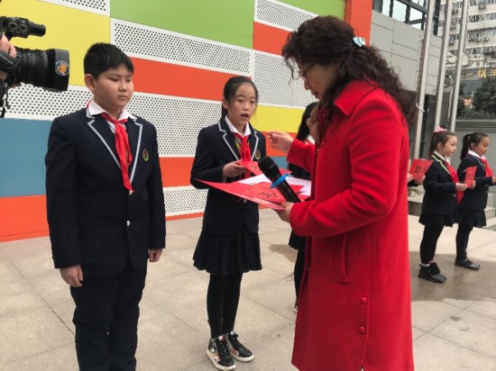 在上午舉行的開學(xué)典禮上,裴素芳校長向6位學(xué)生代表發(fā)放了新年心愿紅包(紅包內(nèi)容體現(xiàn)學(xué)雷鋒和樹校風(fēng)新年愿望),孩子們分別收到了“文明、奉獻(xiàn)、勤奮、助人、安全、夢想”等不同主題的紅包。