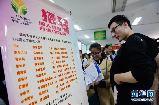 4月1日,學生在招聘會上了解銅川市耀州區(qū)人民醫(yī)院招聘情況。當日,陜西省2018年縣及縣以下醫(yī)療衛(wèi)生機構(gòu)定向招聘醫(yī)學類本科畢業(yè)生專場招聘會在陜西省人才交流服務(wù)中心舉行,現(xiàn)場提供崗位2415個,涉及臨床醫(yī)學、預(yù)防醫(yī)學、口腔醫(yī)學、醫(yī)學影像等專業(yè)。新華社記者李一博攝xuS安康新聞網(wǎng)