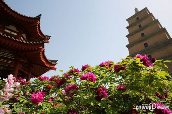 大慈恩寺里牡丹盛開 古塔下國色天香驚艷游客