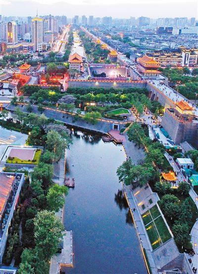 據(jù)了解,2005年以來(lái),護(hù)城河進(jìn)行了多次規(guī);脑臁2005年~2006年,東門——建國(guó)門改造工程實(shí)施,形成1.3公里景觀水域。2013年~2014年,建國(guó)門——朱雀門綜合提升改造示范段工程實(shí)施,形成2.4公里景觀水域。兩期工程共完成河道治理3.9公里,通過(guò)改建截污箱涵,進(jìn)行河道防護(hù),最大程度做到雨污水與景觀水分離,呈現(xiàn)出碧波蕩漾的新面貌。