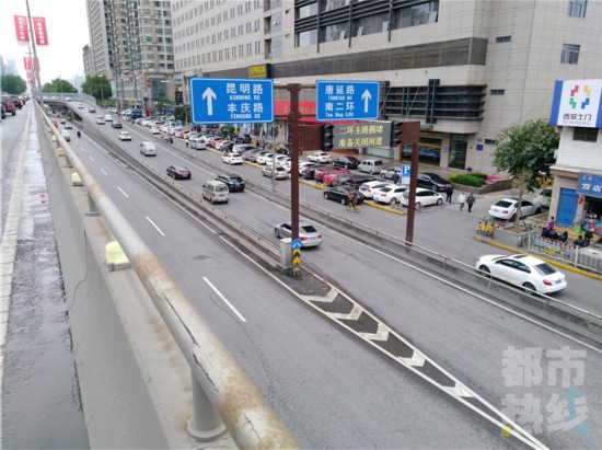 西二環(huán)立交橋匝道口有了紅綠燈,堵時亮紅燈禁入。