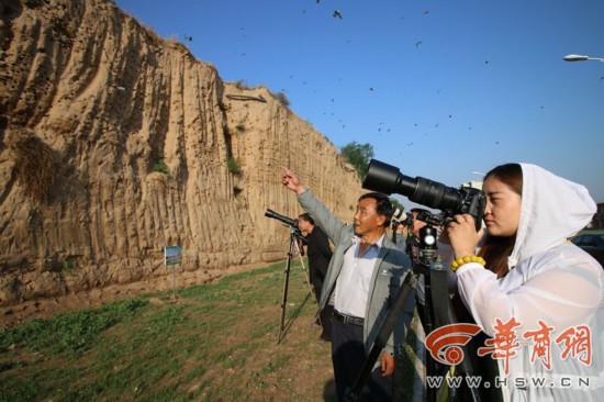 當(dāng)?shù)鼐用駝⑸n峰是一名攝影愛好者。今年4月,他從朋友圈得知石川河南岸有崖沙燕!爱(dāng)時(shí)我就和幾個(gè)攝友一起來(lái)看,并決定邀請(qǐng)更多的攝影愛好者一起來(lái)拍攝!彼f(shuō),從4月至今,他們已經(jīng)多次到這里拍攝。