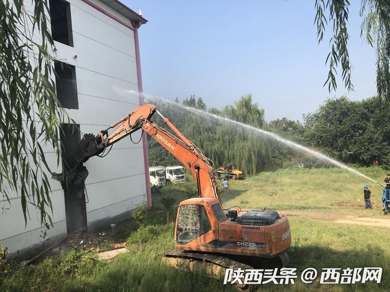 在拉網(wǎng)式大排查結(jié)束后,長(zhǎng)安區(qū)秦嶺違建整治工作進(jìn)入全面高效推進(jìn)期。今天(8月30日),在東大街道高冠景區(qū)門(mén)口,100多名工作人員,8臺(tái)大型機(jī)械通力協(xié)作,合力拆除一幢占地4600多平方米的違法建筑。