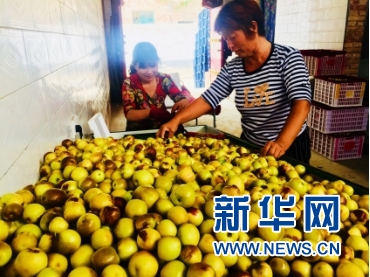 9月10日,大荔嚴通村一冬棗種植戶在自家園子選冬棗,準備裝箱外運銷售。楊喜龍 攝