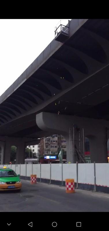華商報記者在梁先生提供的現(xiàn)場視頻上看到,橋上正在電焊作業(yè),火花紛紛濺落,盡管橋下方有圍擋,圍擋外還放了兩個墩子,但火花仍不時濺到墩子外面的路面上,旁邊就是川流不息的車輛和騎摩托的人群,有的車差點就被燒到,非常危險。