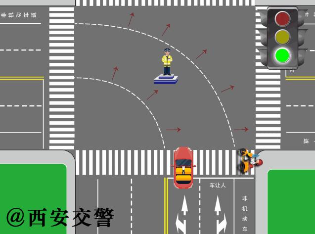 道路情況一:轉(zhuǎn)彎的非機(jī)動(dòng)車通過有交通信號(hào)燈路口