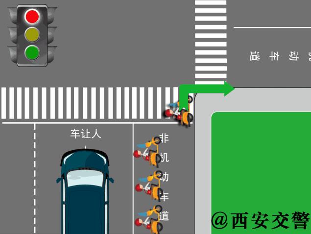 (一)轉(zhuǎn)彎的非機(jī)動(dòng)車讓直行的車輛、行人優(yōu)先通行