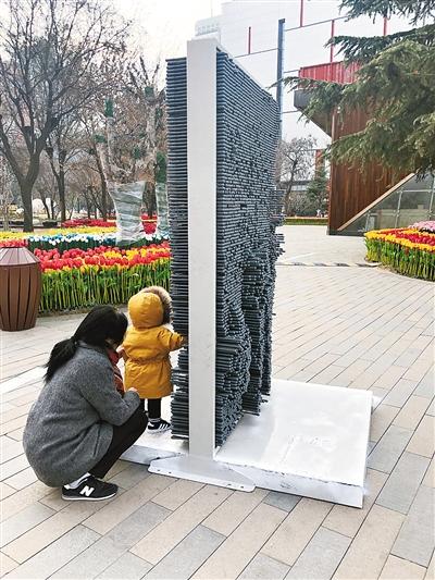 根據(jù)伍先生反映的情況,24日上午,記者來到位于高新區(qū)的創(chuàng)業(yè)咖啡街區(qū),在街區(qū)北側(cè)廣場(chǎng)上,記者看到伍先生提到的4座三維人體百變針雕。整個(gè)針雕是一個(gè)類似大相框的鐵架子,中間放置了上千根塑料材質(zhì)的針管。人只要向這些針管靠進(jìn)去,對(duì)面就會(huì)印出一個(gè)立體的人形,非常有趣。然而記者注意到,雖然每個(gè)大鐵框下方預(yù)留有螺絲孔,但卻沒有進(jìn)行固定,F(xiàn)場(chǎng),不時(shí)有孩子和市民好奇地在上面玩耍。