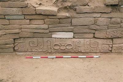 皇城臺(tái)考古工作啟動(dòng)于2016年,迄今持續(xù)工作三年,主要集中在東護(hù)墻北段上部、皇城臺(tái)門址和頂部大臺(tái)基區(qū)域,收獲重大。2018年,通過進(jìn)一步考古發(fā)掘,皇城臺(tái)臺(tái)頂格局和輪廓逐漸清晰?脊湃藛T發(fā)現(xiàn)皇城臺(tái)臺(tái)頂?shù)囊恍┐笮徒ㄖ湓谝惶帯笆痢钡拇笮团_(tái)基上,大致呈南北向長(zhǎng)方形。大型臺(tái)基東西寬約80米、殘高約4米,南北長(zhǎng)度約在120米以上!靶掳l(fā)現(xiàn)的30余件石雕作品集中出土于大型臺(tái)基南護(hù)墻墻體的倒塌石塊內(nèi),有一些還鑲嵌在南護(hù)墻墻面上!睋(jù)考古專家介紹,這些石雕絕大多數(shù)是雕刻在石塊一面的單面雕刻,雕刻內(nèi)容分為符號(hào)、人面、神面、動(dòng)物、神獸等,有一些畫面長(zhǎng)度近3米,以中心神面為中心,兩側(cè)對(duì)稱雕出動(dòng)物和人面,體現(xiàn)出成熟的藝術(shù)構(gòu)思和精湛的雕刻技藝。本報(bào)記者 趙爭(zhēng)耀