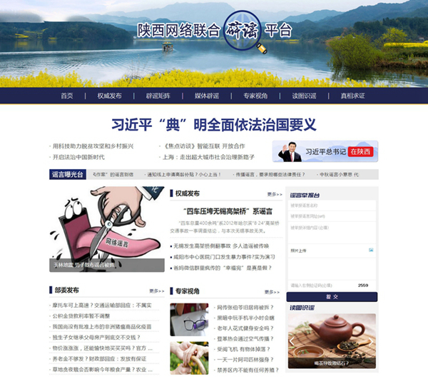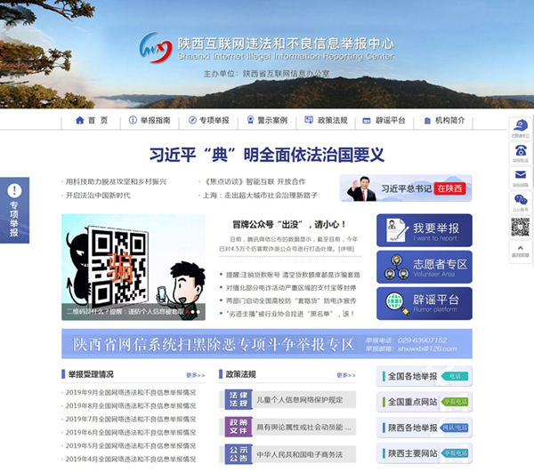 陜西省網(wǎng)絡(luò)舉報(bào)中心官網(wǎng)“陜西互聯(lián)網(wǎng)違法和不良信息舉報(bào)中心”網(wǎng)站上線于2017年2月5日,主要功能是開展網(wǎng)絡(luò)舉報(bào)工作宣傳,受理網(wǎng)民對(duì)網(wǎng)絡(luò)違法和不良信息舉報(bào),開展針對(duì)網(wǎng)絡(luò)謠言的識(shí)謠辟謠工作,以及配合相關(guān)部門做好網(wǎng)絡(luò)輿情的正面引導(dǎo)。“陜西網(wǎng)絡(luò)聯(lián)合辟謠平臺(tái)”是陜西網(wǎng)絡(luò)辟謠聯(lián)盟的官方網(wǎng)站,上線于2017年7月28日,主要用于宣傳、受理和發(fā)布重要辟謠信息及公布相關(guān)工作數(shù)據(jù)。DEV安康新聞網(wǎng)