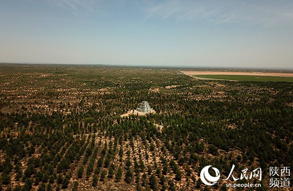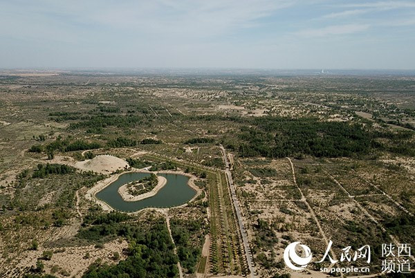 地處榆陽(yáng)區(qū)的榆林沙漠國(guó)家森林公園。 人民網(wǎng)記者吳超攝