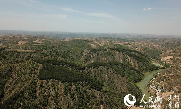 從高空俯瞰,高西溝披上了一層“綠衣”。 人民網(wǎng)記者吳超攝