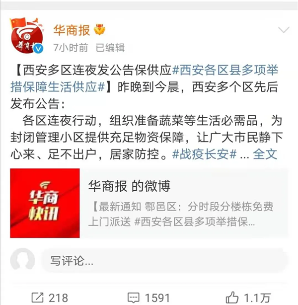 12月28日晚,西安全市總動(dòng)員組織準(zhǔn)備蔬菜等生活必需品,為封閉管理小區(qū)提供充足物資保障,鄠邑區(qū)、碑林區(qū)、雁塔區(qū)、高新區(qū)等陸續(xù)發(fā)布物資保障公告,讓廣大市民靜下心來(lái)、足不出戶,居家防控。