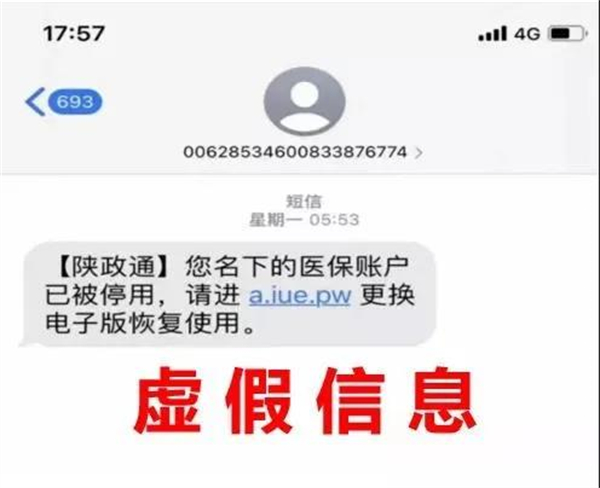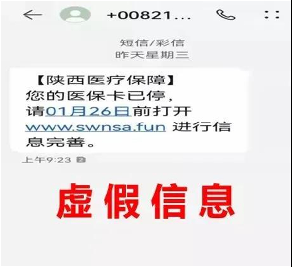 陜西省醫(yī)療保障局提醒:此類短信為詐騙短信,請勿輕信。