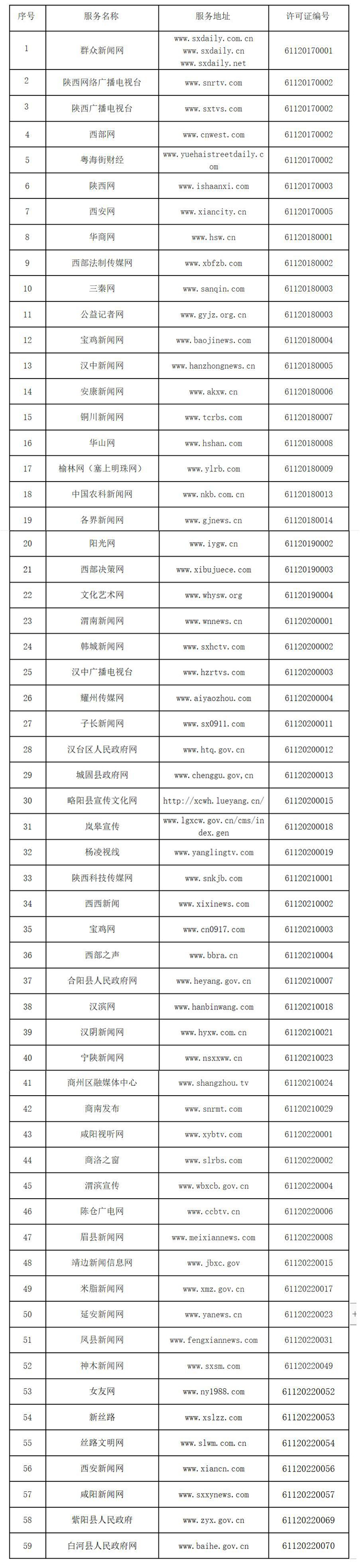 陜西省互聯(lián)網(wǎng)新聞信息服務(wù)單位許可信息(截至2022年9月22日)