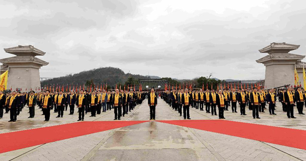 4月5日,癸卯(2023)年清明公祭軒轅黃帝典禮在黃陵縣橋山祭祀廣場舉行。肖捷、朱永新、趙一德、趙剛、林中森、郁慕明、陳旭、張志軍、徐新榮等參加公祭典禮。 記者 母家亮攝