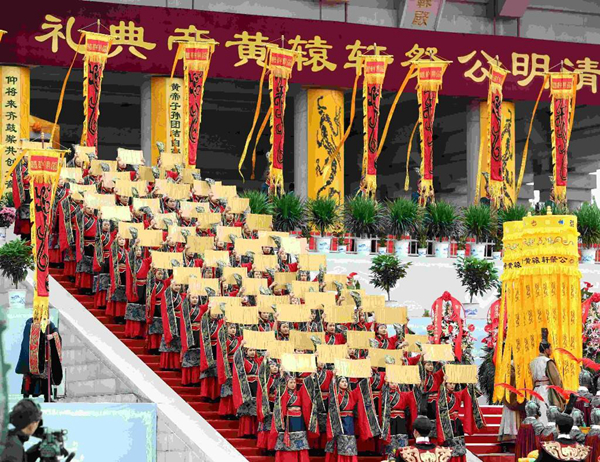 陜西省省長趙剛恭讀祭文。隨后,全體人員向軒轅黃帝像行三鞠躬禮。