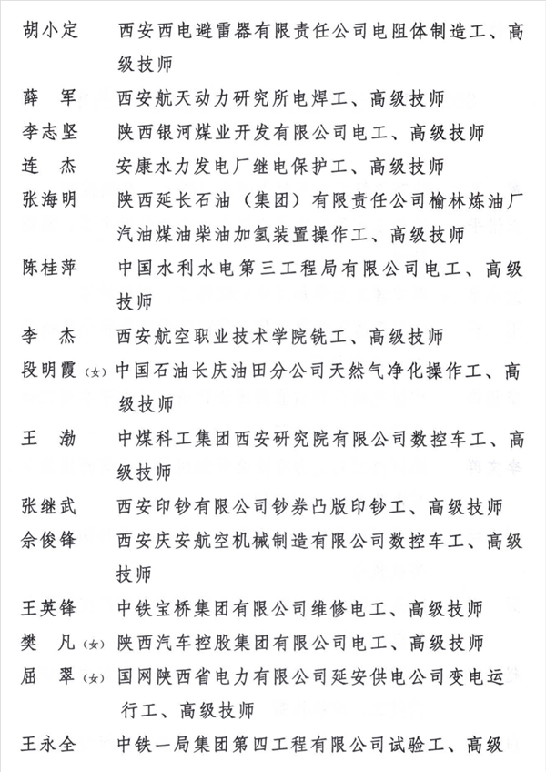 2022年“三秦工匠”稱號(hào)獲得者名單