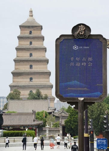↑西安大雁塔周邊展示的電子廣告牌(5月16日攝)。新華社記者 邵瑞 攝nwC安康新聞網(wǎng)