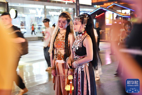 ↑5月15日,游客在西安大唐不夜城參觀。新華社記者 李一博 攝nwC安康新聞網(wǎng)
