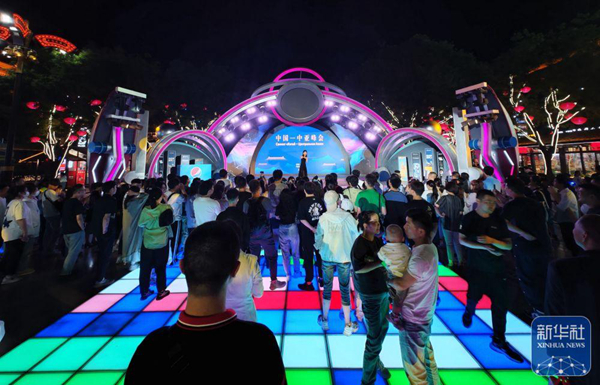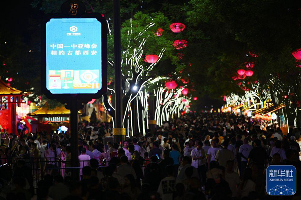 ↑5月15日,游客在西安市大唐不夜城游覽。新華社記者 張博文 攝nwC安康新聞網(wǎng)