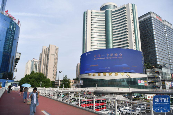 ↑這是5月15日拍攝的西安市雁塔區(qū)一處商場外的中國-中亞峰會宣傳海報。新華社記者 張博文 攝nwC安康新聞網(wǎng)