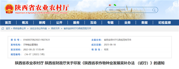 第二十二條 本辦法自2023年10月1日起施行(2022年度取得的成果參照本辦法執(zhí)行),有效期2年,待陜西農(nóng)作物育種創(chuàng)新能力和種子企業(yè)競爭力得到明顯提升后,補(bǔ)助政策將逐步退出。