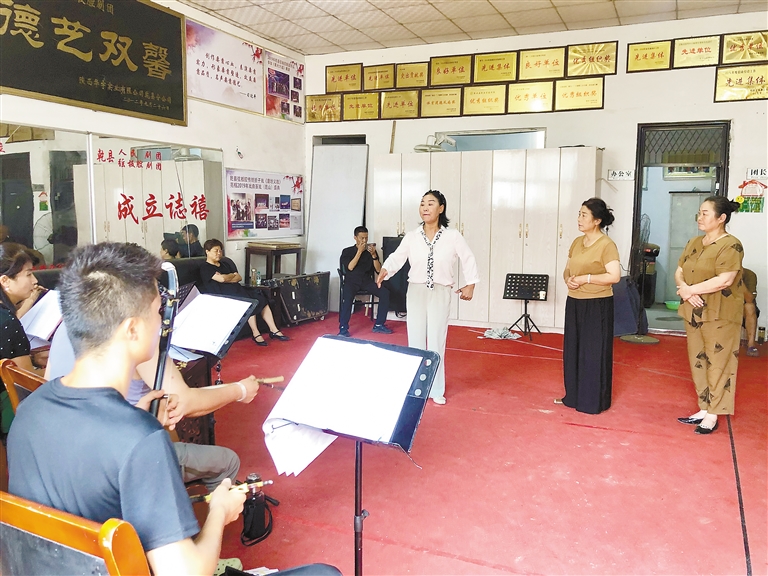 7月28日,乾縣弦板腔劇團(tuán)的演員們?cè)谂啪殹?記者 張樂佳攝